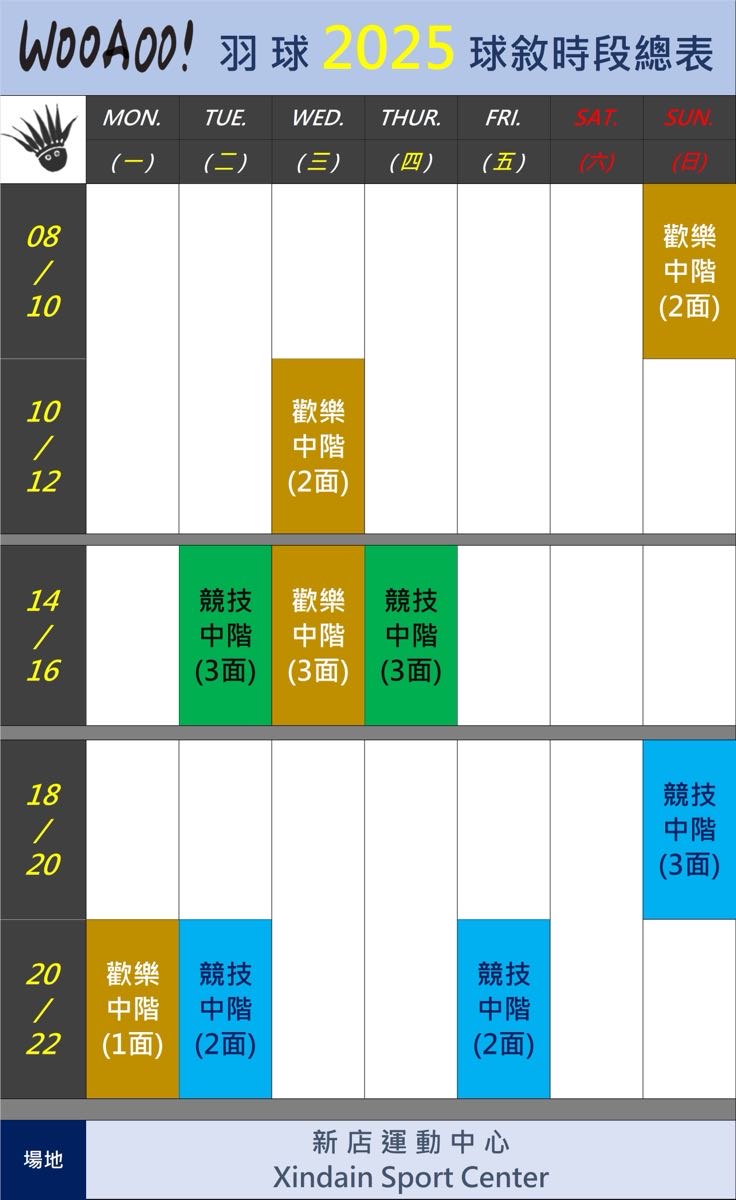 點選下方「確認報名」按鍵後,即代表您將前往:新店國民運動中心,2025-12-14 星期日 18:00 ~ 20:00的場地。