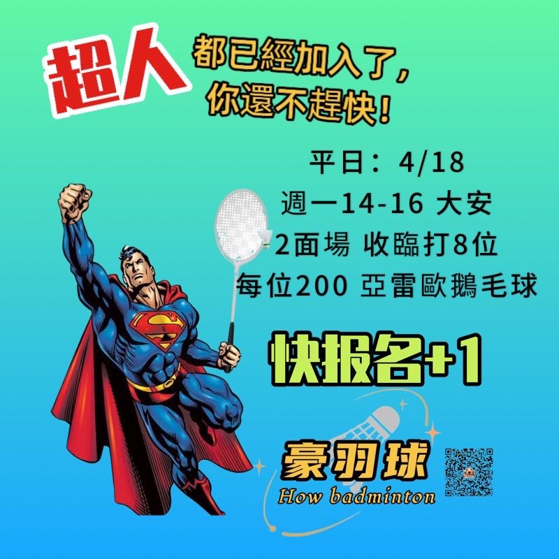 點選下方「確認報名」按鍵後,即代表您將前往:大安運動中心,2023-01-02 星期一 14:00 ~ 16:00的場地。