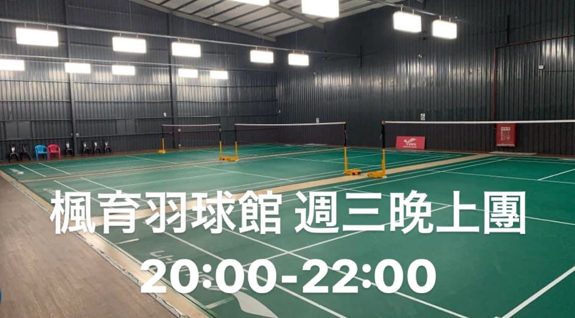 點選下方「確認報名」按鍵後,即代表您將前往:楓育羽球館,2024-11-20 星期三 20:00 ~ 22:00的場地。