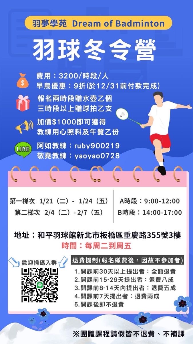 點選下方「確認報名」按鍵後,即代表您將前往:奧創體育板橋館,2024-11-16 星期六 12:00 ~ 14:00的場地。