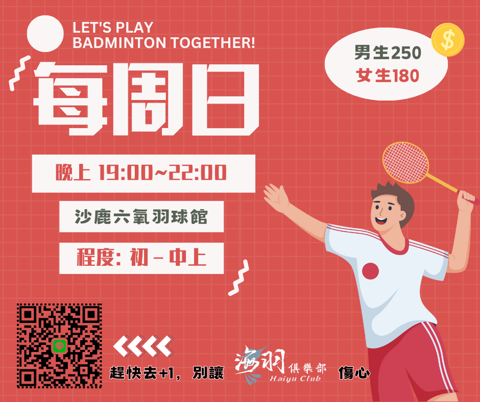 點選下方「確認報名」按鍵後,即代表您將前往:六氧羽球館,2026-04-26 星期日 19:00 ~ 22:00的場地。