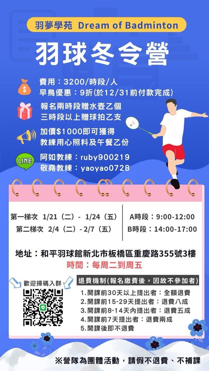 點選下方「確認報名」按鍵後,即代表您將前往:奧創體育板橋館,2025-01-18 星期六 16:00 ~ 18:00的場地。