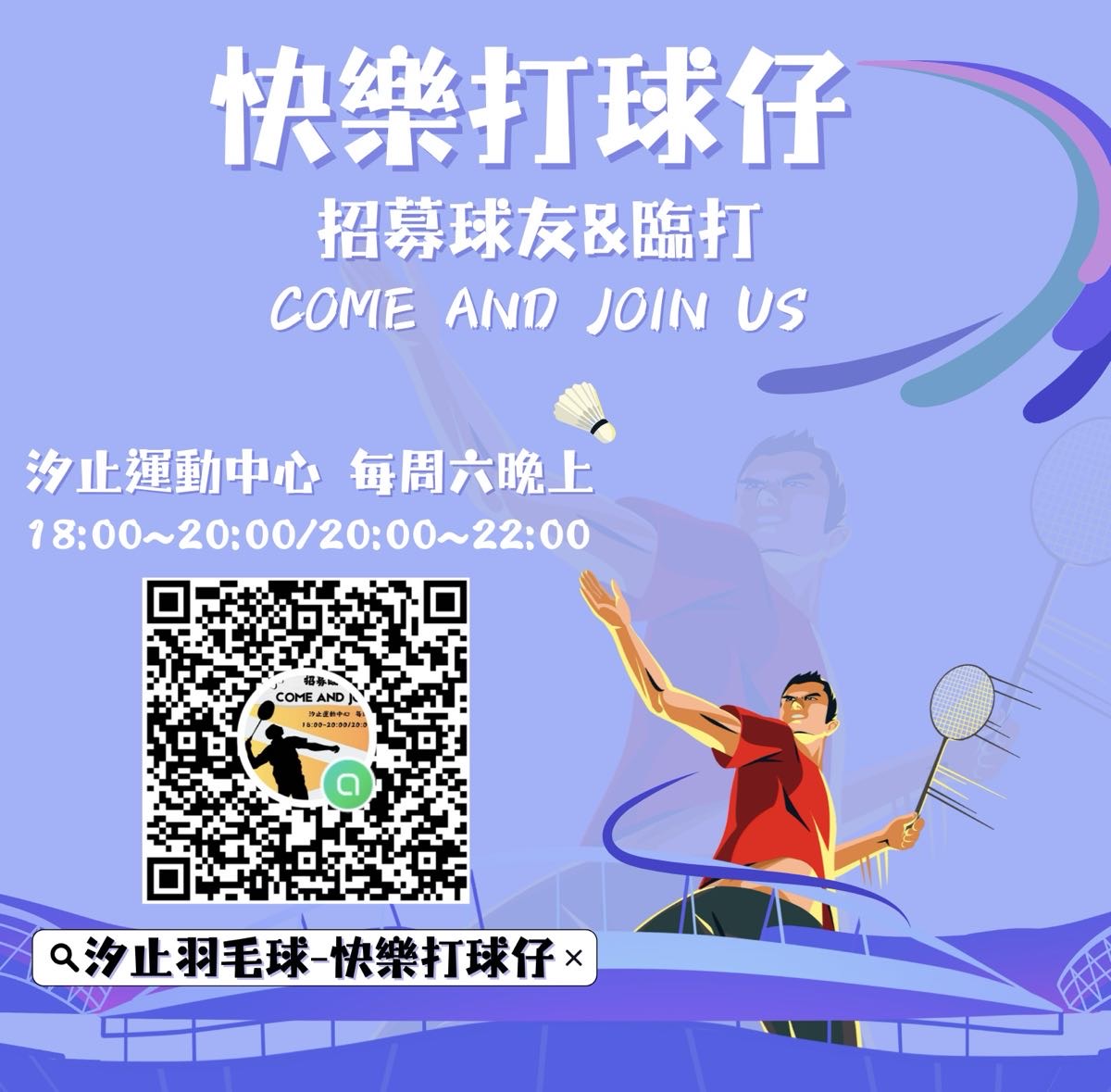 點選下方「確認報名」按鍵後,即代表您將前往:汐止運動中心,2026-04-25 星期六 18:00 ~ 20:00的場地。
