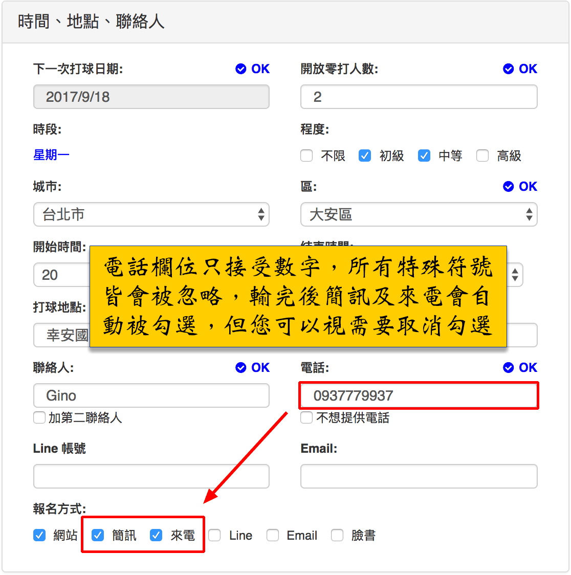 新增場地後,當有球友透過網站報名或在您的版上留言,系統都會發信通知 (