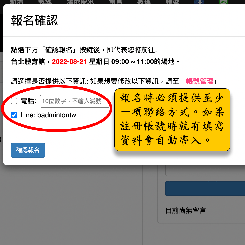 - 為了讓資訊平等,報名者需要提供至少一項的聯絡方式。